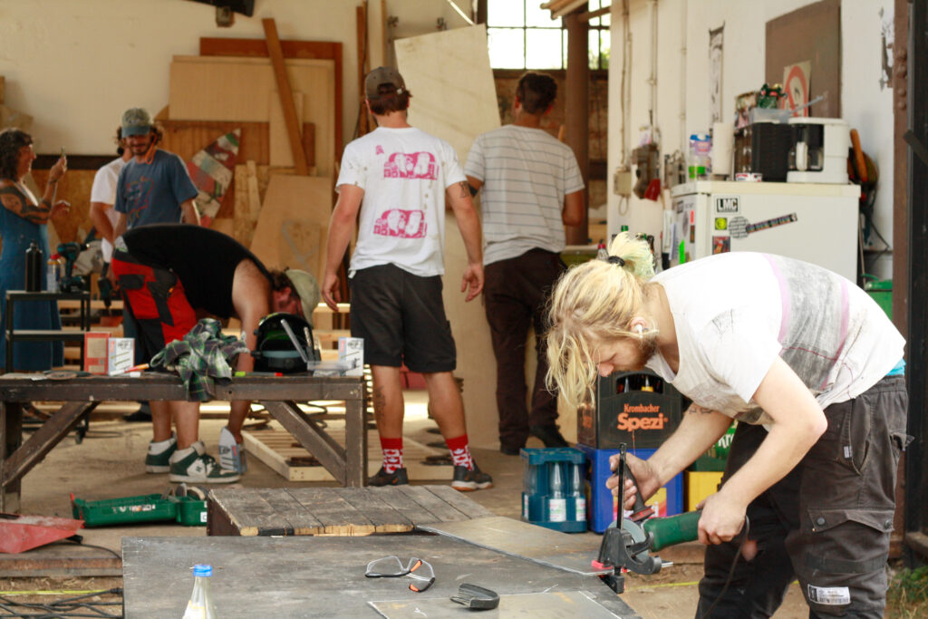 Die Skatenacht ist unsere »älteste« Veranstaltung in Weimar und zugleich eine Begegnungsplattform für Jung und Alt. Im Vorfeld werden von Ehrenamtlichen Hindernisse in einer intensiven Bauwoche geplant, umgesetzt sowie gestaltet. Am Tag selbst gibt es einen Workshop für Anfänger*innen und Familien, kleine Spiele und Auftritte lokaler DJs und Nachwuchsbands.